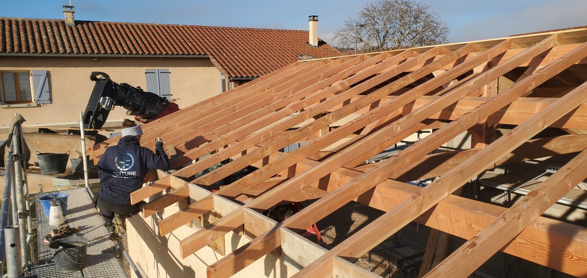 Découpe de la couverture et préparation soignée du chevêtre dans le respect de la charpente.