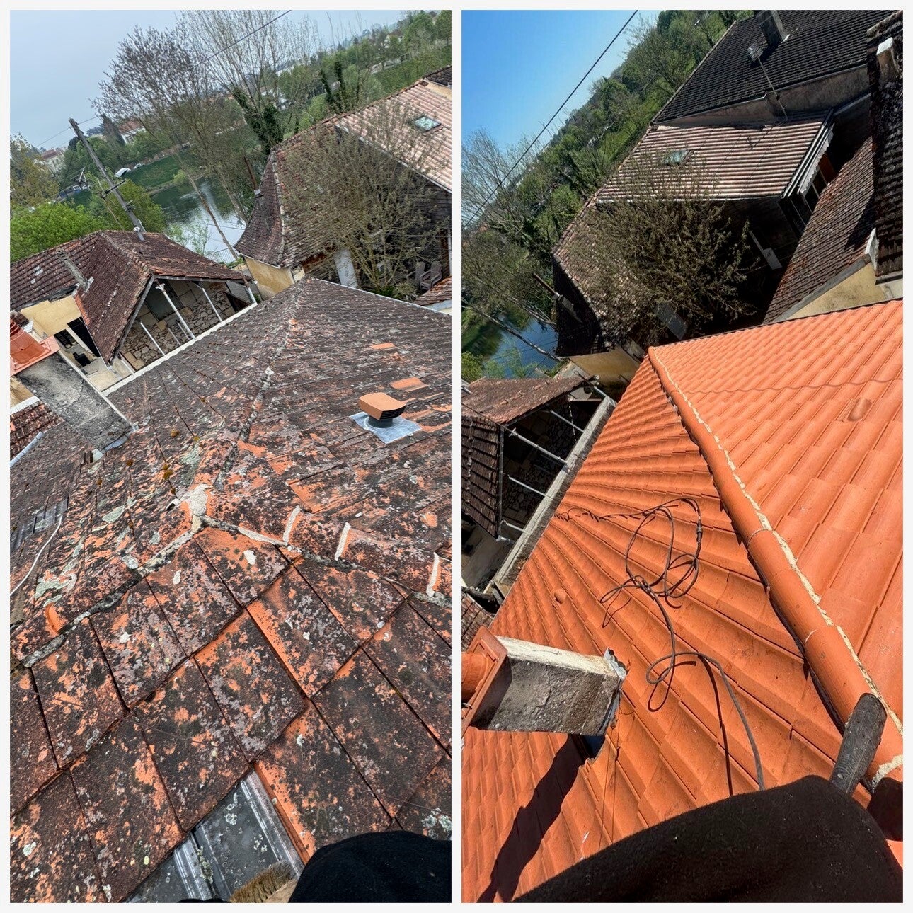 Nettoyage contrôlé : brossage et rinçage basse pression (pas de haute pression agressive) pour ne pas décaper la tuile.